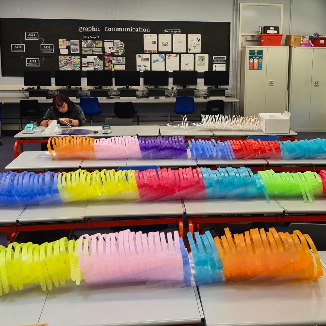. 1,736 visors were made and distributed to local care homes, medical centres, East Surrey Hospital Surrey and Sussex Healthcare NHS Trust, dental surgeries.