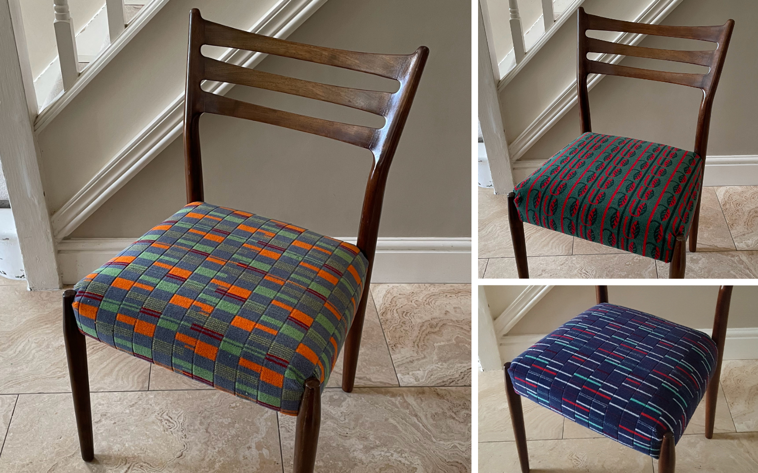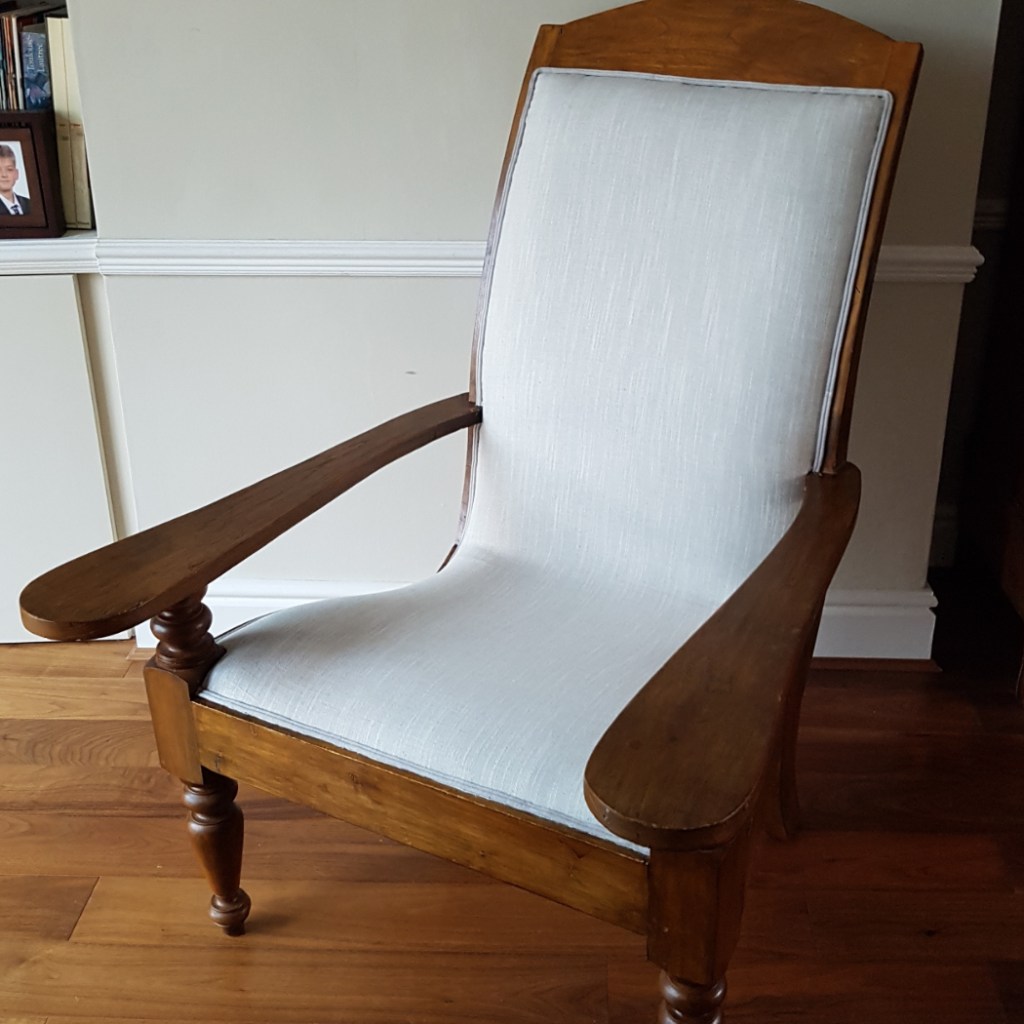 A really great reupholstering of two much loved but rather old chairs – super work, a very personal service and much appreciated – highly recommended!
