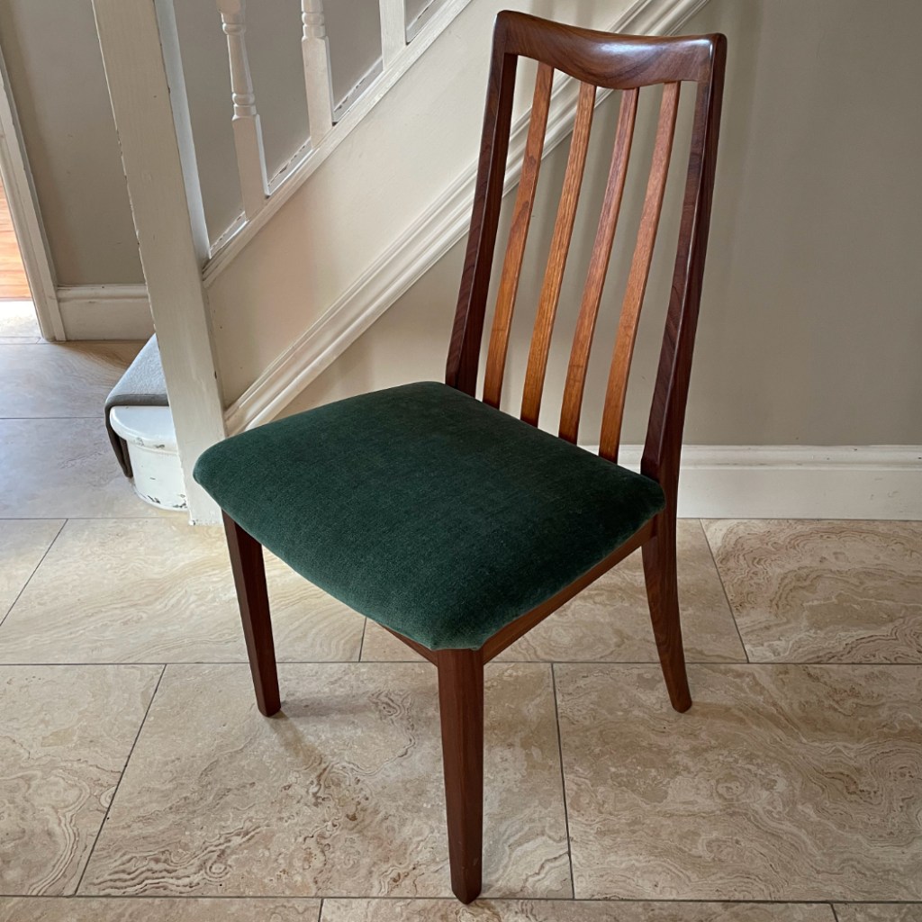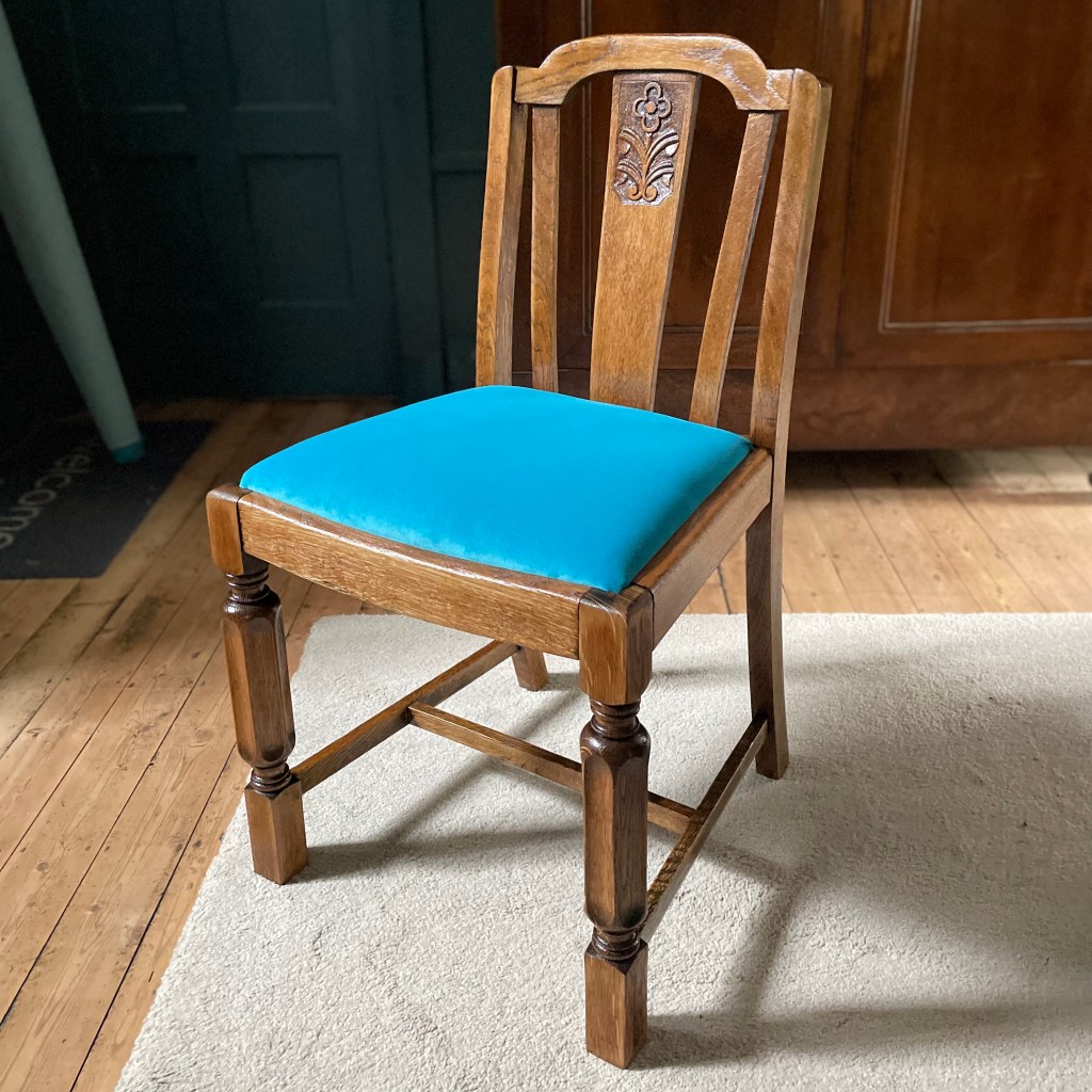 I asked Stephan to re-upholster two post-war chairs that belonged to my late parents and I’m thrilled with the results. He helped me to choose a vibrant turquoise fabric for the seats and it’s brought new life to these old discarded chairs. The quality and finish are superb and the wood has been painstakingly restored and varnished. Stephan is an artist as well as a craftsman and I would highly recommend him. He’s very pleasant to deal with as well.