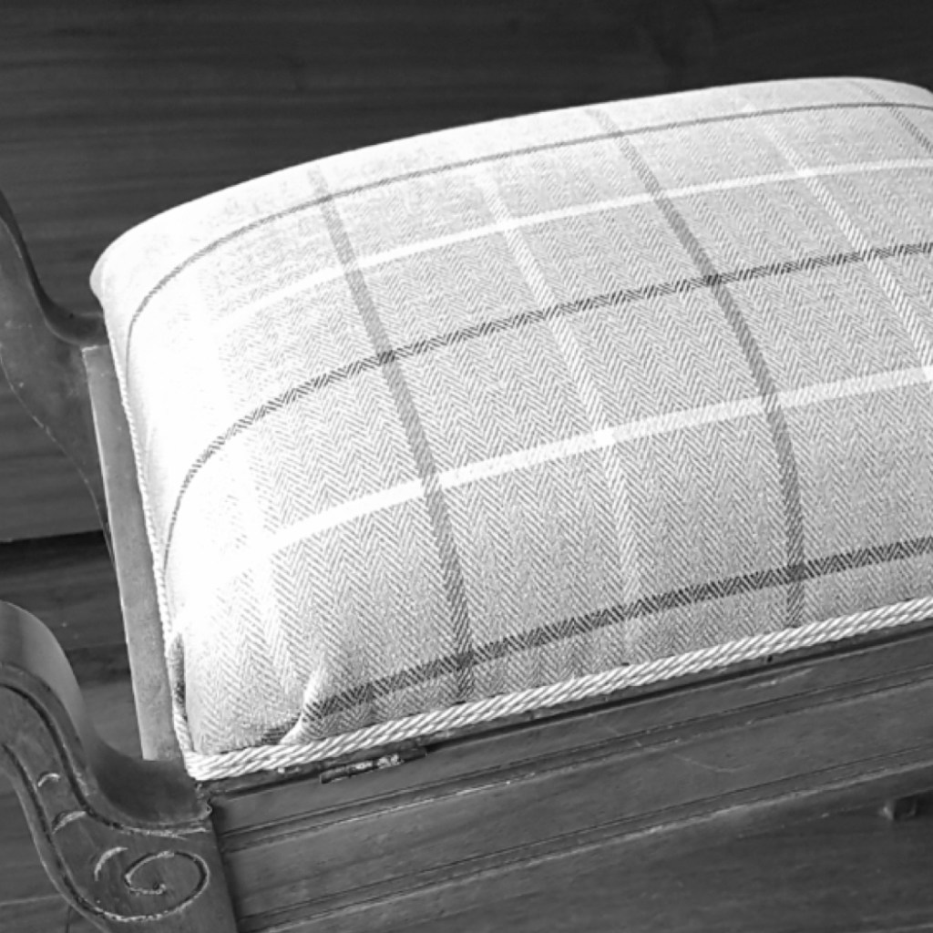 The upholsterer covers the bottom of the seat with a cotton canvas called “Jaconas” in order to hide the unattractive webbing and prevent dust from circulating.