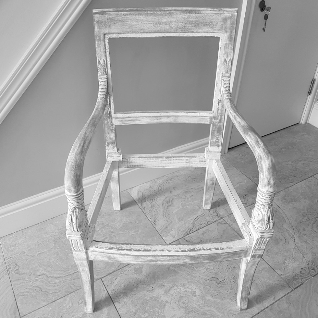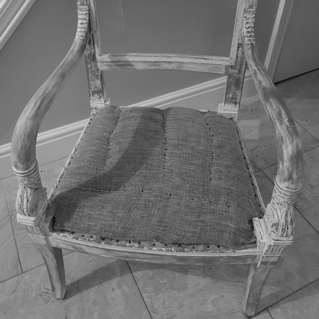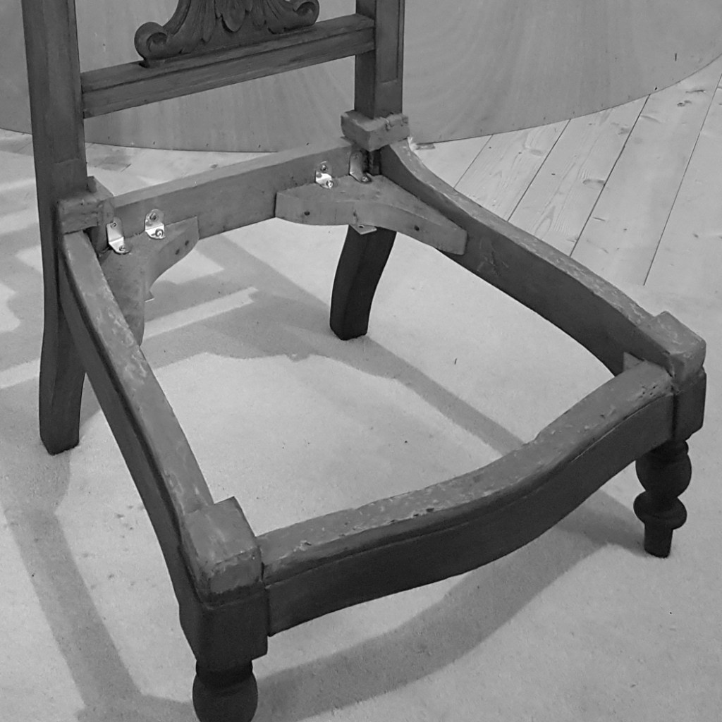 This is the first act of the upholsterer: bare the carcass by removing the fabric and the padding. The duration of the stripping varies according to what is discovered from the state of the chair. This work is sometimes long and tedious because it is necessary to remove all the nails and staples that held the whole of the cover and the trim.